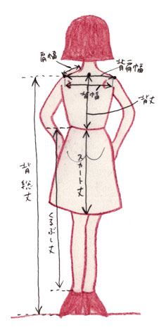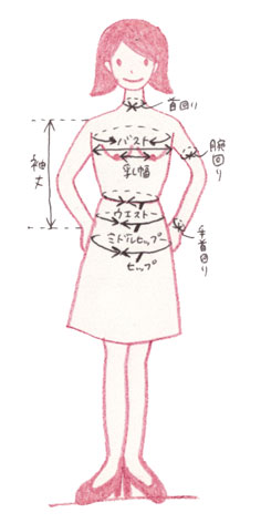 当店から採寸方法やお届け時期などを記述したお取引メールをお送りした後、以下の箇所をお客様ご自身にて採寸をして、